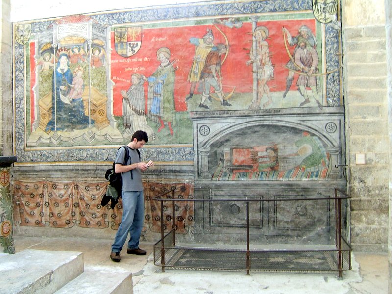 we arrived at a small building outside the main fortified Church of Notre-Dame-de-Valère.