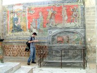 Admiring a slate roof just outside of the church.