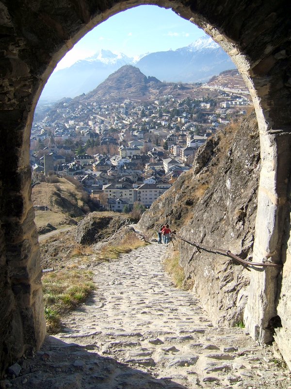 On the way up you pass through this archway with a super view back down the path and of Sion.