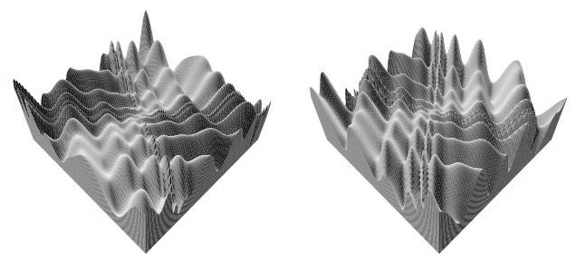 The left figure shows the two dimensional non-rotated landscape.
