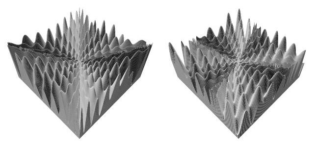The schwefel function is symmetric, separable and multimodal (left).