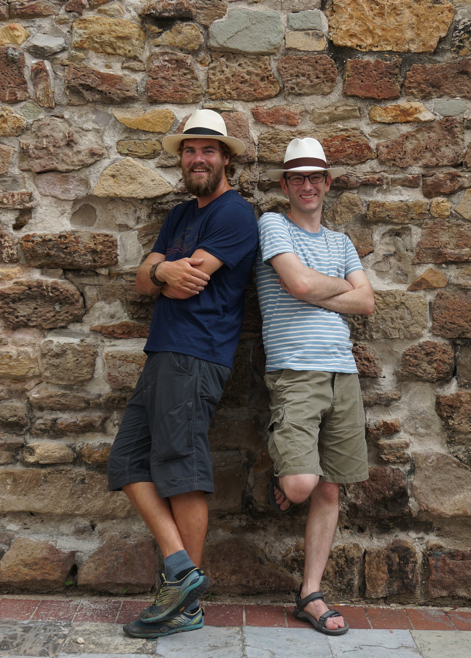 Modeling their new panama hats |